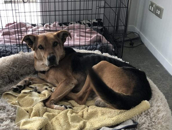The lifestyle property he is fostered on has standard farm fencing and gates with no issues; he has free run during the day and loves to snooze with the other dogs while his foster carer works from home for a few hours a day.