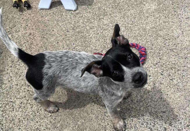 Jasmine is a medium-sized, female, Blue Heeler puppy, aged 10 months.