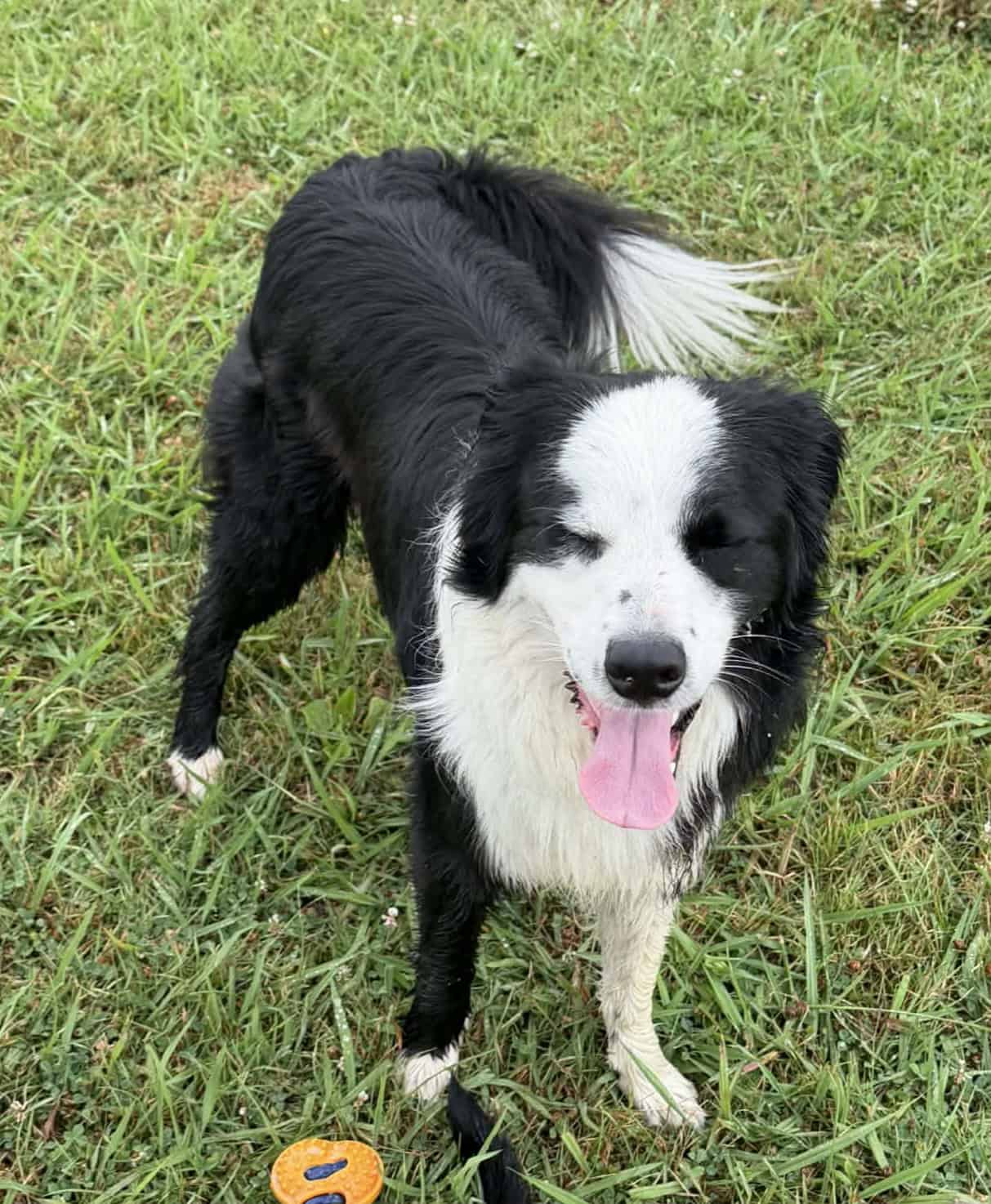 Louie is a medium-sized, male Border Collie, aged 2 years old.