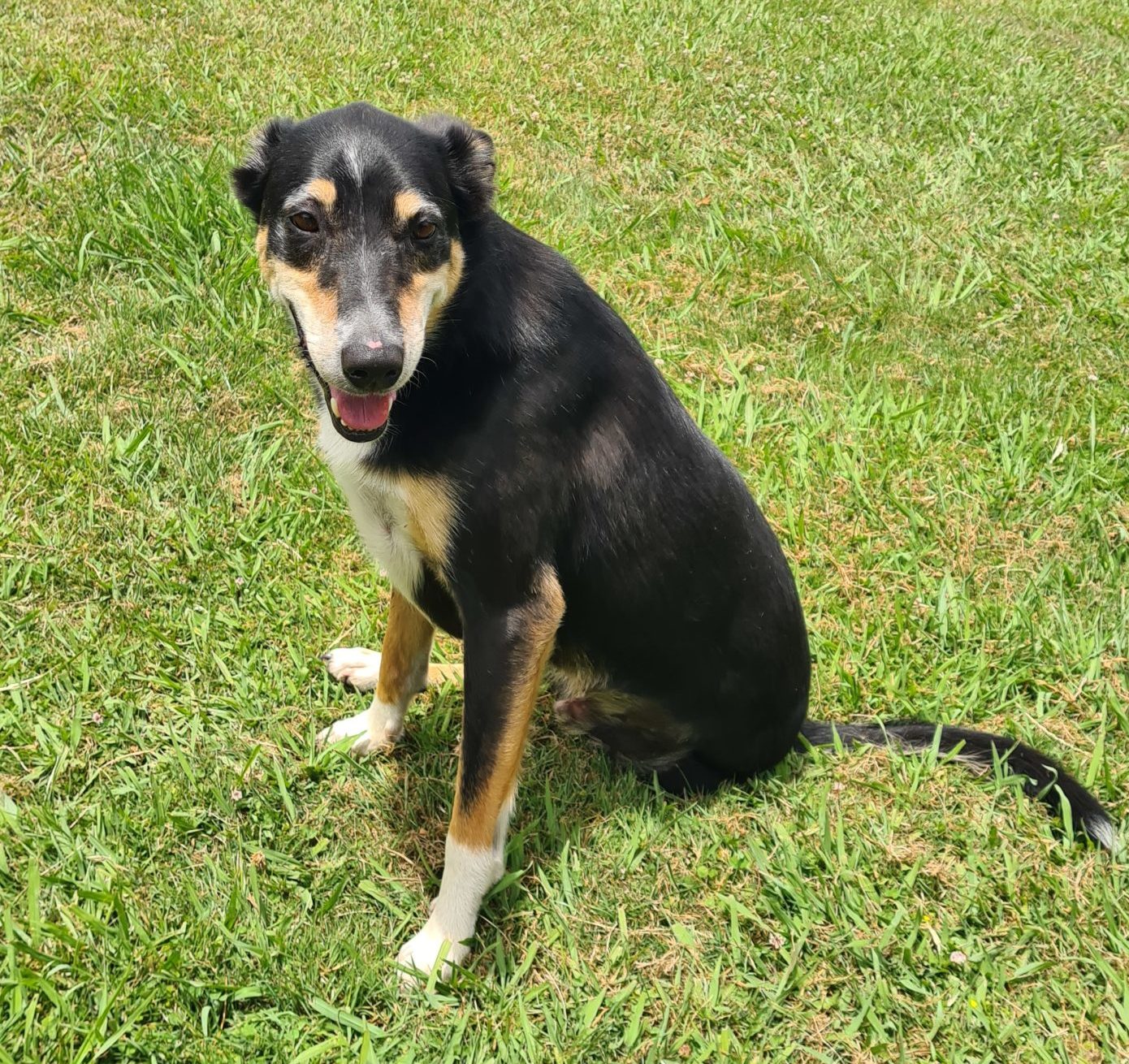 Nugget is a very affectionate boy. He his eager to please. He’ll shake your hand. Nugget is very responsive with commands. He loves playing with other dogs, water, chilling. He doesn’t jump gates/fences of course and doesn’t/can’t swim, but he does like been around water, beach etc. He does enjoy rounding up sheep, naturally, but he is also happy being around the house. As good as he is around cats and chickens, he would happily sit and watch them all day. He’s great with our toddler but does need reminding about personal space. He’s a happy boy and needs a home that has more time for him then we do now.