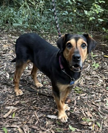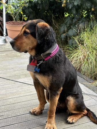 She’s still mobile, in good health, respectful of fencing, and easy to have around. She’s been good with other dogs, though busy or loud ones can overwhelm her — a calm, confident companion would suit her best. Her favourite place? Curled up in her bed on the deck, just watching the world go by.
