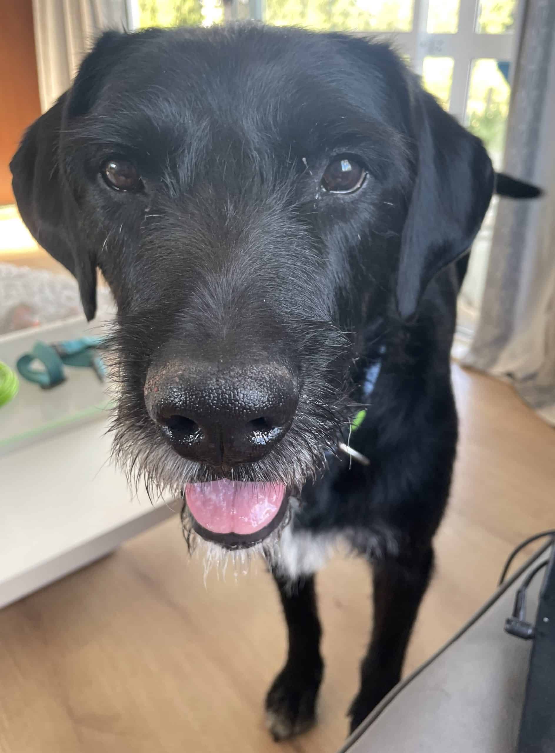 Vivid is a big softy who sometimes forgets how big his feet are, but this just makes him more adorable; and his heart is even bigger than his feet! This makes for easy pats when walking as you wonโt need to bend down to pat him. Vivid is completely house trained and sleeps on a duvet on the floor of the bedroom. He is not crate trained due to his size but has no problem chilling in the house or in an outside kennel if youโre not home. He can bark when left alone – not usually for long and this is currently being worked on – a bit of extra training in this area would be good for him but be aware that this may be an issue (at least initially) if you have close neighbours.