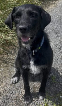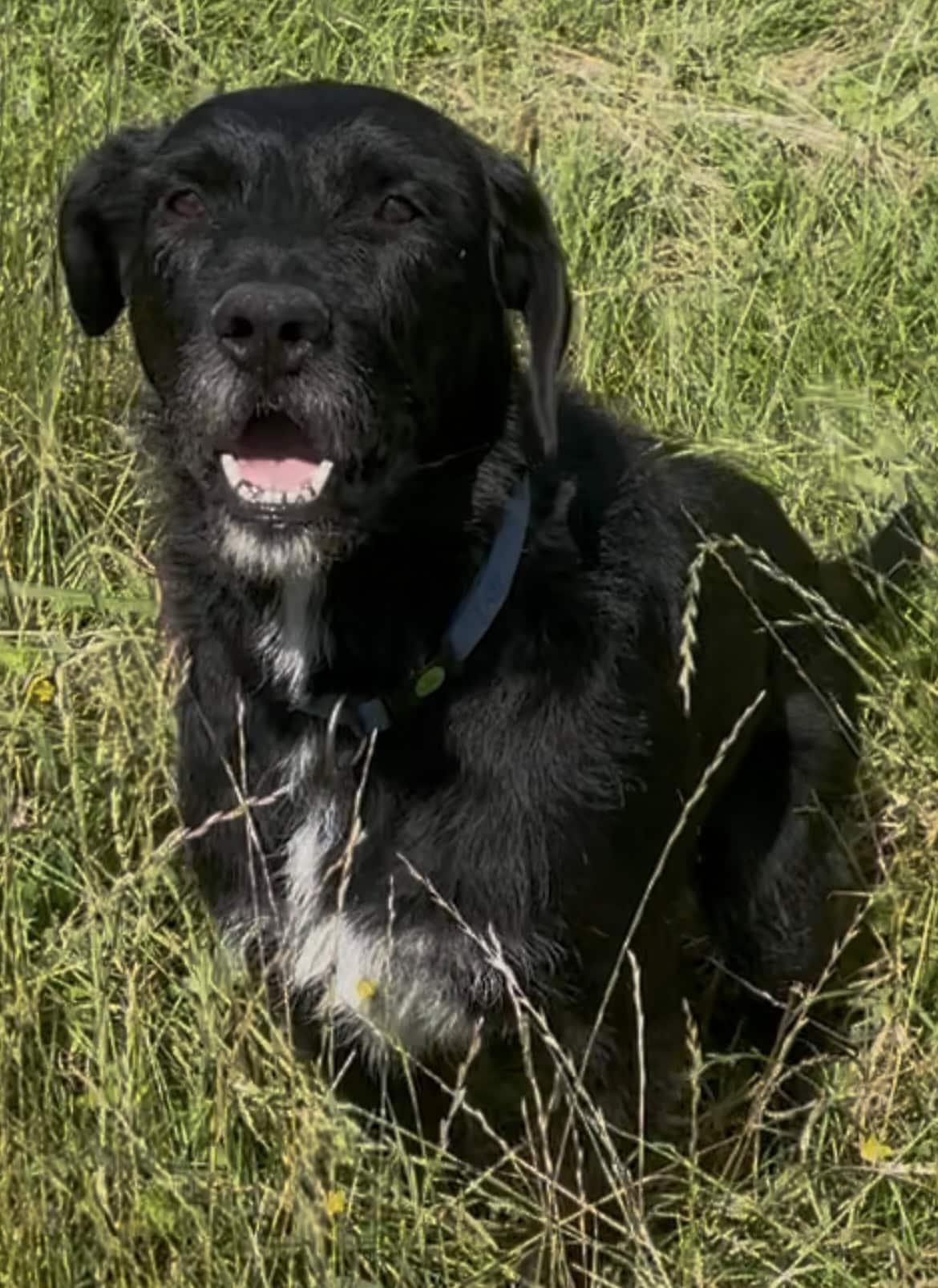 Vivid is a large, male Bearded Collie X, aged 7 years old.
